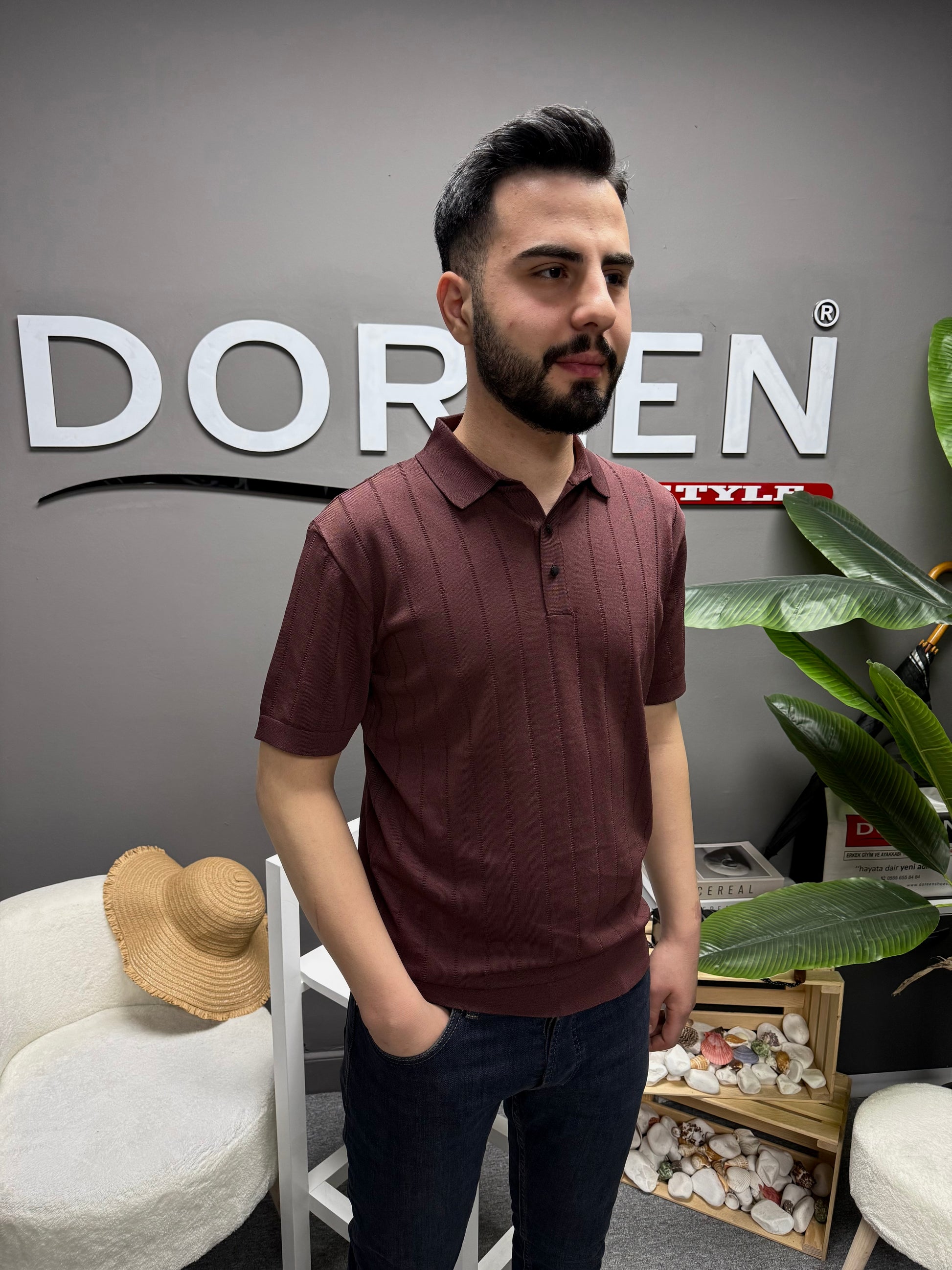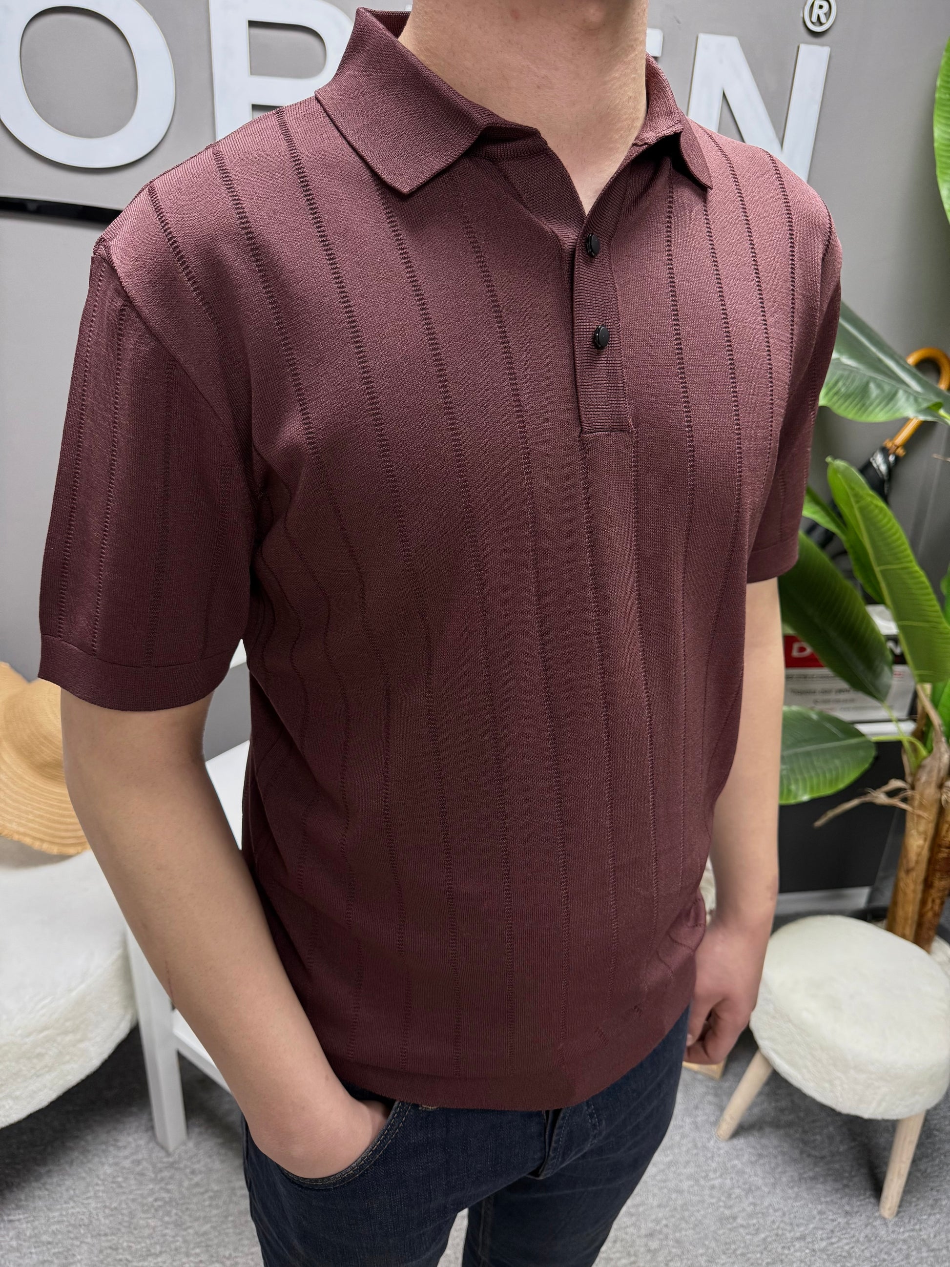 Rayon kumaş Fitilli polo yaka tişört ile konforu sende hisset.